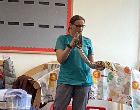 This week, we have continued our topic on People Who Help Us in Our Community, focusing on vets. The children were very excited to welcome some vets who came to visit us, and they even brought along their dog and a snake for us to meet! The children asked lots of thoughtful questions and thoroughly enjoyed learning about how vets care for animals. It was a lovely and very informative afternoon for everyone.