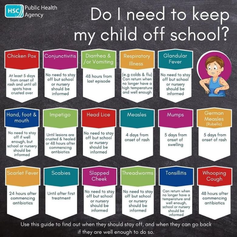Below is guidance for to show if your child can come to school/how long you may need to keep your child off from school with the below medical conditions: