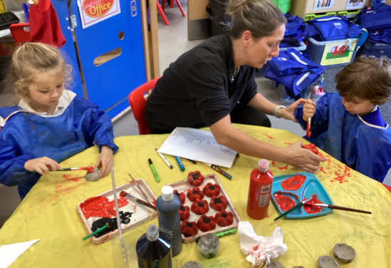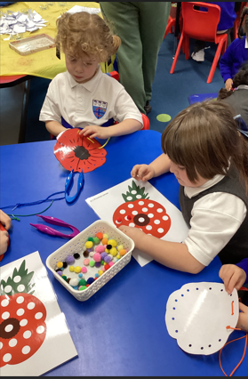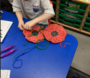 Inside the classroom, we explored Remembrance subitising, created beautiful ceramic poppies, and developed their fine motor skills by threading poppies and picking up pom-poms with tweezers.