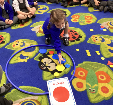 In Maths, we began the week by investigating 2D shapes. We learnt to name shapes and describe their properties, before sorting circles and triangles into the correct hoops. We enjoyed a shape hunt around the classroom and sorted the shapes we found into the correct chart. Towards the end of the week, we explored positional language, describing where Teddy was using words such as under, over, behind, and in front of.