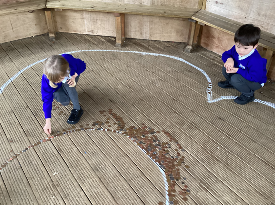 The children were introduced to Numicon, including using the giant Numicon in the middle of the circle. We explored how each Numicon piece for 1,2 and 3 is made up of smaller parts and discussed how numbers fit together.