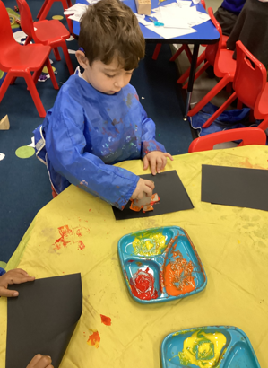 Our new topic for this term is Celebrations, and this week we have been learning all about Diwali. The children discovered what this special festival means and how it is celebrated around the world. On Wednesday, we had the opportunity to taste some traditional Diwali foods, including samosas, pakoras, onion bhajis, and patties. The children used their senses to explore the food: noticing the vibrant colours, describing the spices they could smell, and using wonderful describing words to explain how each item tasted. On Friday, we had a wonderful day celebrating Diwali in class. The children made clay Diwali lamps, created colourful rangoli patterns using pom-poms and tiles, and decorated “henna hands” using paint and piping bags. It was a joyful and creative way to end the week.
