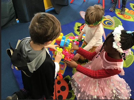 During exploring time, the children have loved dressing up, role-playing, building in the construction area, and beginning to play collaboratively with their peers.