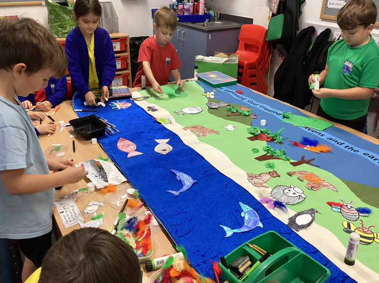 This week, the children participated in our Creation Workshop, led by staff from St Peter and St Paul’s Church and St Stephen’s Church. During the session, pupils engaged in a range of activities, including creative arts, where they collaboratively produced a large collage of animals linked to our RE learning on the Creation story. They also enjoyed outdoor games and activities, such as parachute play and role-playing as different animals.